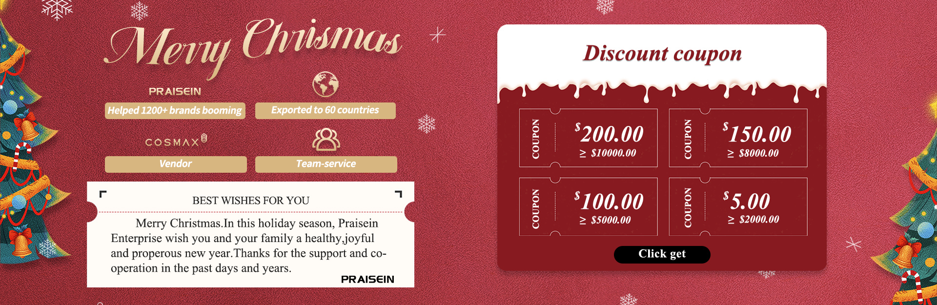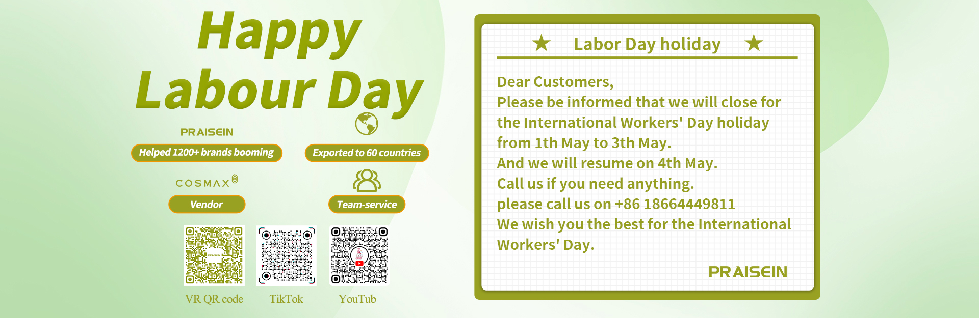 Praisein was established in 1993, we specialize in plastic cosmetic packaging for more than 20 years. We exported to more than 60 countries with quality packaging for cosmetic, beauty and skin care. 90% of praisen clients make repeat orders. Praisein business partners include famous brands COSMAX, WOW, VOV, KANAIZI, etc.